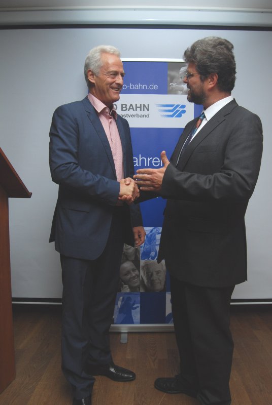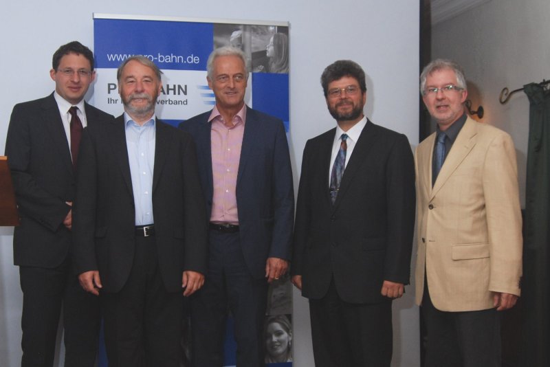 Vor dem Gastvortrag fand ein Meinungsaustausch mit Vertretern von Bundes-, Landes- und Regionalvorständen von PRO BAHN statt. Von links: Dr. Matthias Beß (stellvertretender Vorsitzender von PRO BAHN Bayern), Dr. Matthias Wiegner (Vorsitzender von PRO BAHN Bayern), Dr. Peter Ramsauer (Bundesminister für Verkehr, Bau und Stadtentwicklung), Jörg Bruchertseifer (Bundesvorsitzender von PRO BAHN), Winfried Karg (stellvertretender Vorsitzender von PRO BAHN Bayern), Foto: Moy