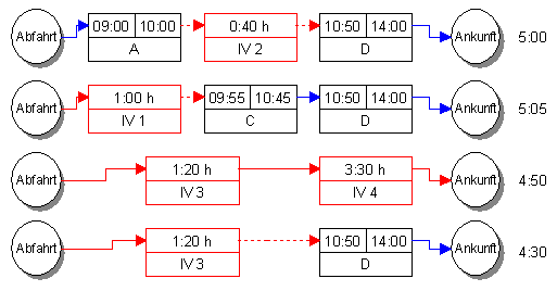 man etwa die Fahrzeiten für die Autoteilverbindungen, dann wird dieses